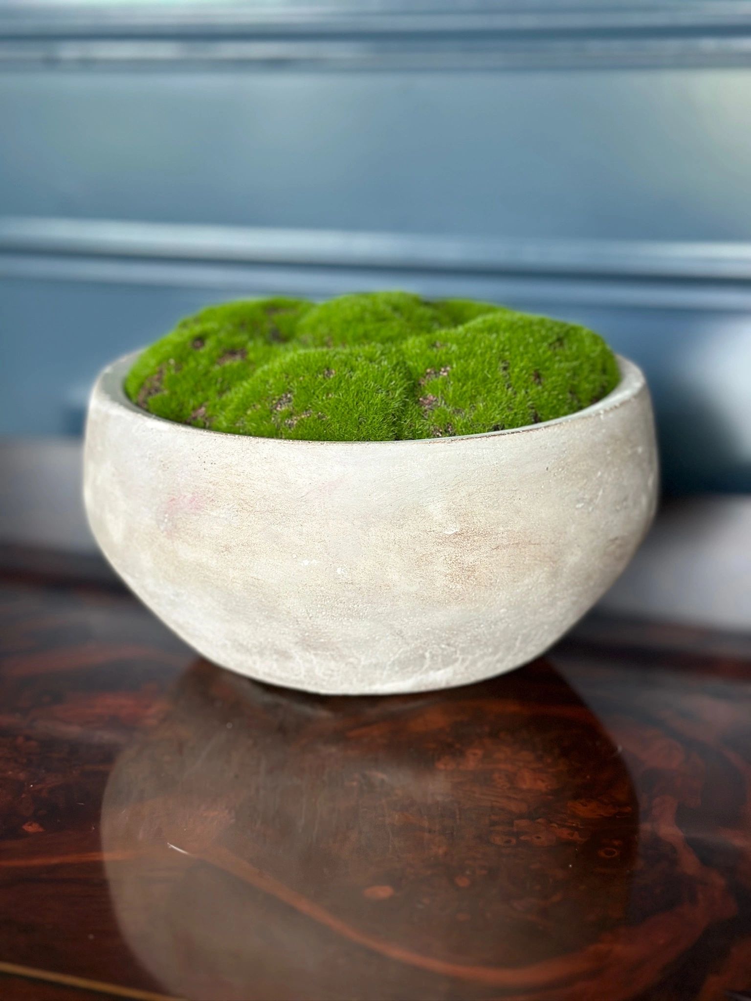 Each moss bowl is carefully style with premium faux moss to add texture, color, and calm - no upkeep required. These timeless accents are made to elevate bookshelves, coffee tables, and designer spaces with ease.